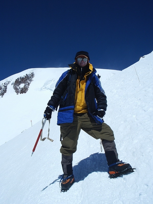 Иван Королевский на косой полке Эльбруса.